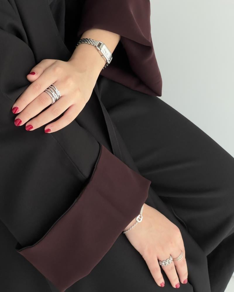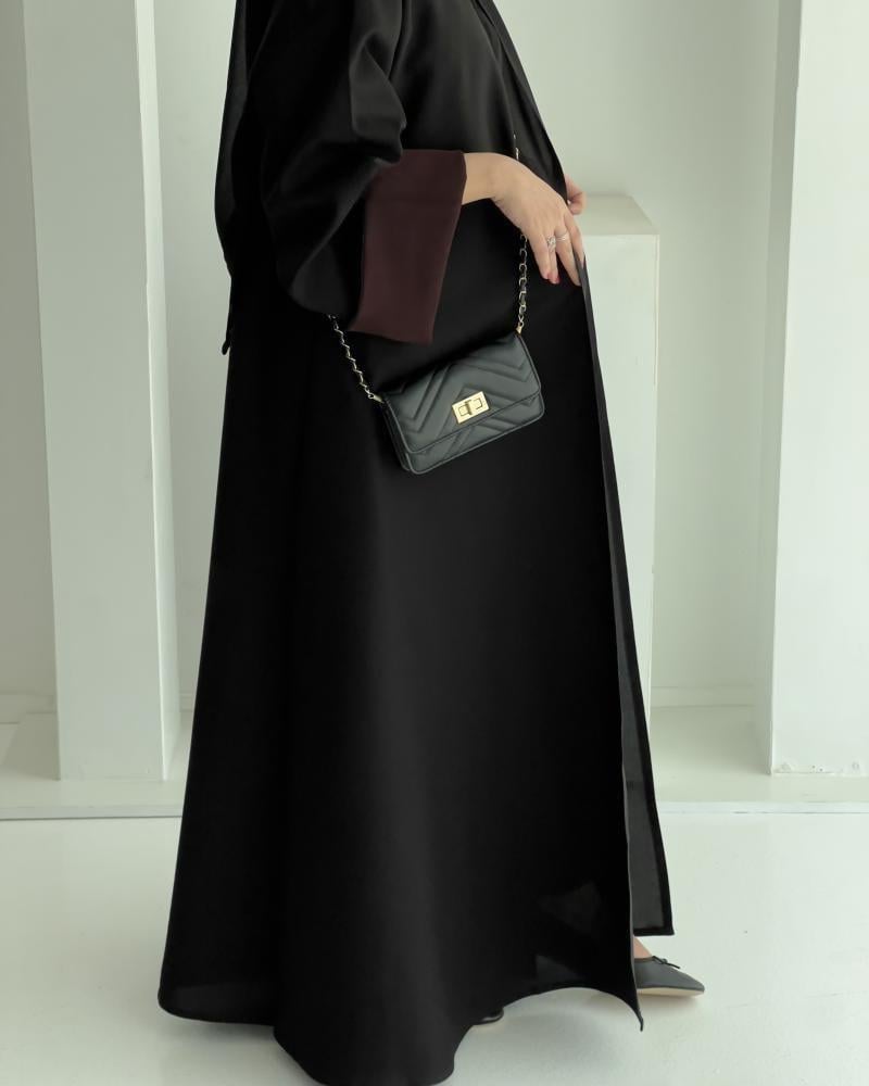 عباية مفتوحة بتصميم عصري تضيف لمظهرك لمسة من الأناقة العملية ، تتميّز عباية برزن بقصّة مريحة وانسيابية وتأتي بأكمام ملوّنة تضيف لمسة فريدة وجذابة على الإطلالة مما يجعلها مثالية للتنسيق مع فساتين أو أطقم مختلفة ، تصميمها المفتوح يجعلها خيارًا مثاليًا للإطلالات اليومية والمناسبات البسيطة مع الحفاظ على طابعها المحتشم والراقي ،اطلبيه الآن من برزن وعيشي تفاصيل التصميم الراقي بكل ثقة.