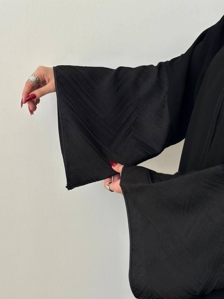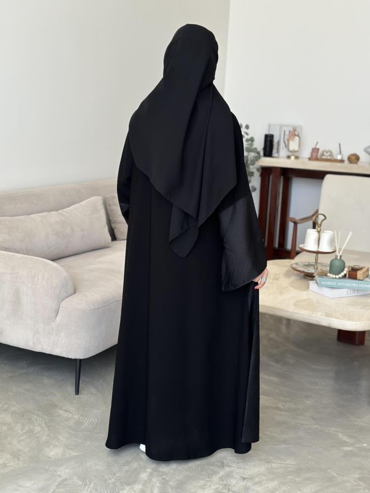 - تتميز بقماش كريب كوري فاخر ناعم للحفاظ على شكل العباية وفخامتها.